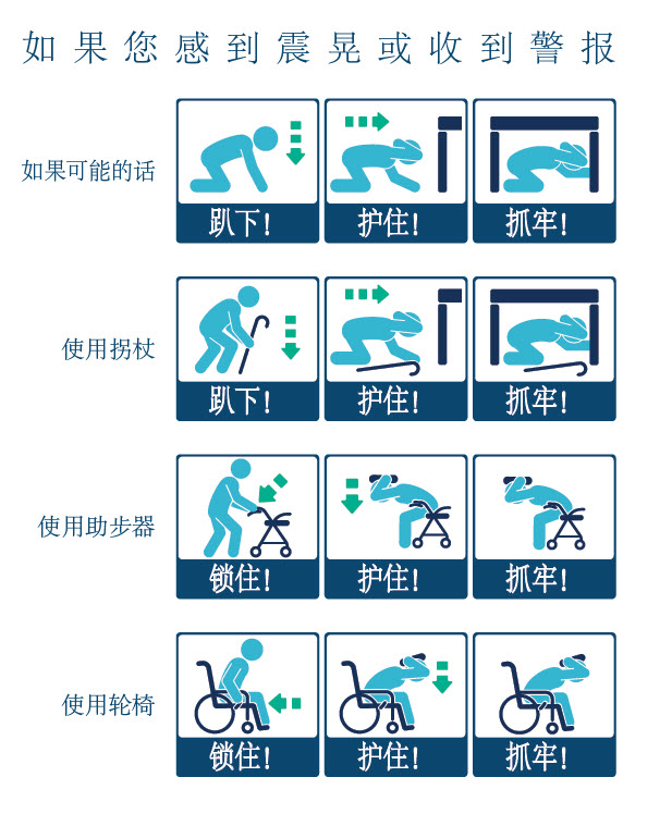- 如果是由地震引起的,趴下,掩护,然后抓住,首先保护自己免受地震的伤害。